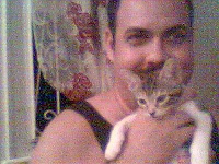 I always think of Simon as my firstborn son, but there is also Patch – son of Ginja The Ninja; who came along on August 16th 2002, he’s my Baby Huey – an enormous toddler who, as he was neutered early, remained a perpetual virgin infant – unlike regular cats he does not MIAOW he would say MEW as a teen but now, he goes a sort of MIR as he’s gotten older.