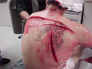 The above-displayed photos of a man with inch-deep slash wounds across his chest and back first reached our inbox