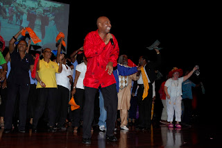 The show?s spectacular closing segment featured three special guest performers. First on stage was Ricky Brathwaite, who filled the air with the unique sound of his trumpet. Next up was singing sensation Carlyn Leacock who stopped the show with her soulful and powerful vocals, having briefly handled a footwear ?malfunction? with ultimate professionalism. Red Plastic Bag brought the event to a musically vibrant and colourful climax with his winning calypso “Something’s Happening” bringing the entire cast of over 100 performers back on stage for the curtain call.