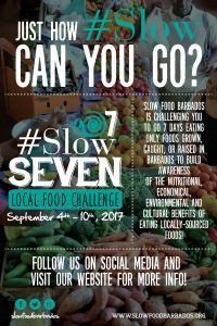 Whether you want to try one locally sourced meal or take on the challenge of eating 100% Bajan for the week, you’re invited to be a part of the fun! There will be lots of prizes in store, recipes and community participation to help you along. Sign up to participate and you will receive an email with a FREE Barbados Buyer’s Guide (A list of local farmers, producers and fisherfolk), a suggested shopping list, participating restaurants and a resource with local recipes that you can try during the Slow Seven Challenge.